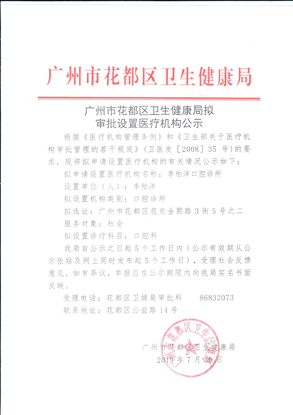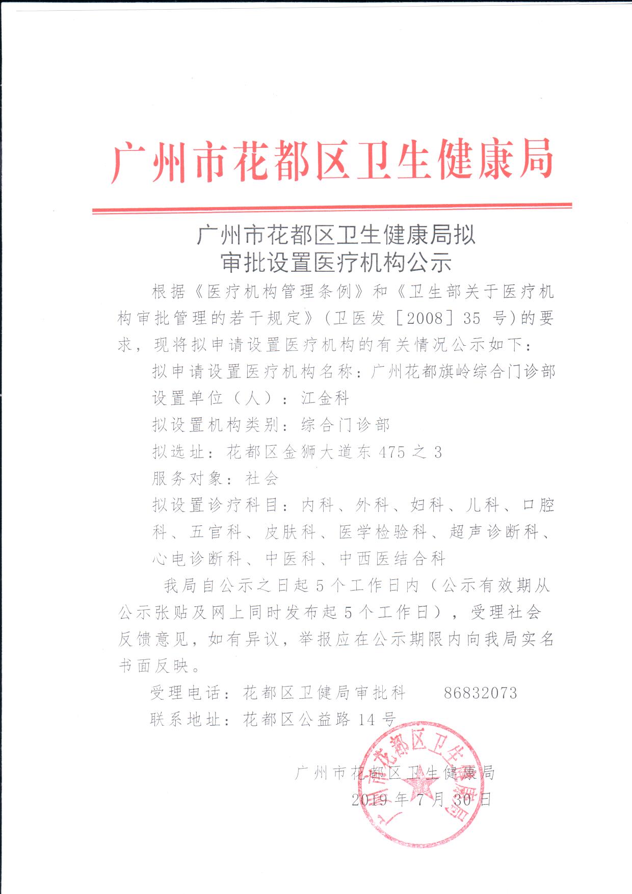 廣州市花都區衛生健康局擬審批設置醫療機構公示