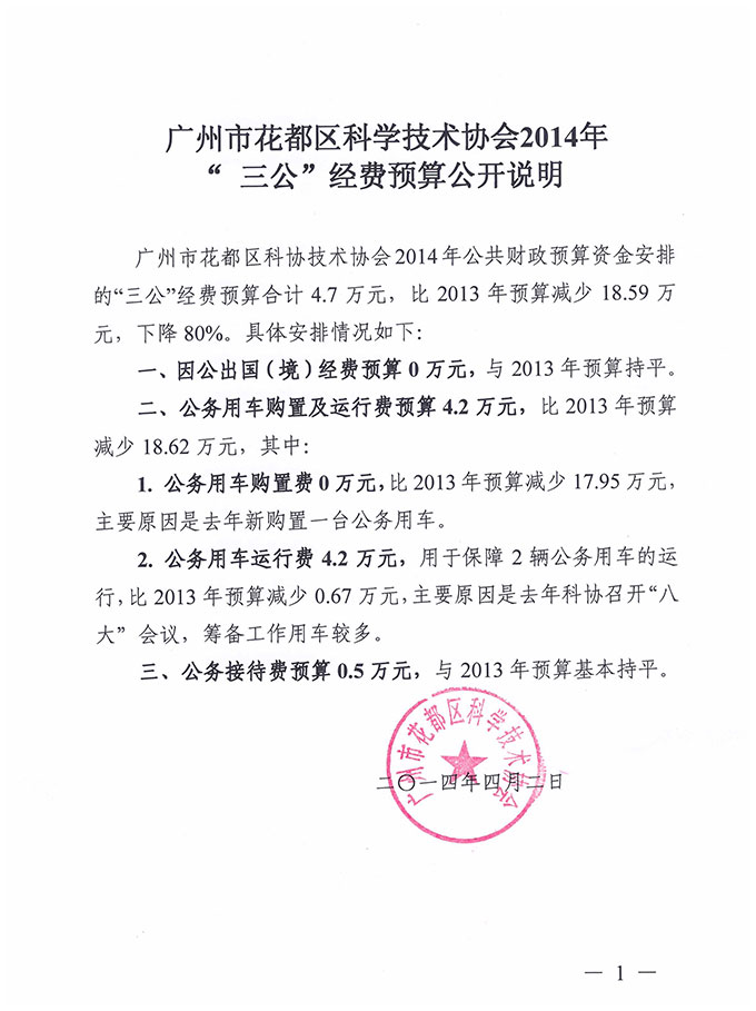 2014年花都區科學技術協會“三公”經費預算公開說明