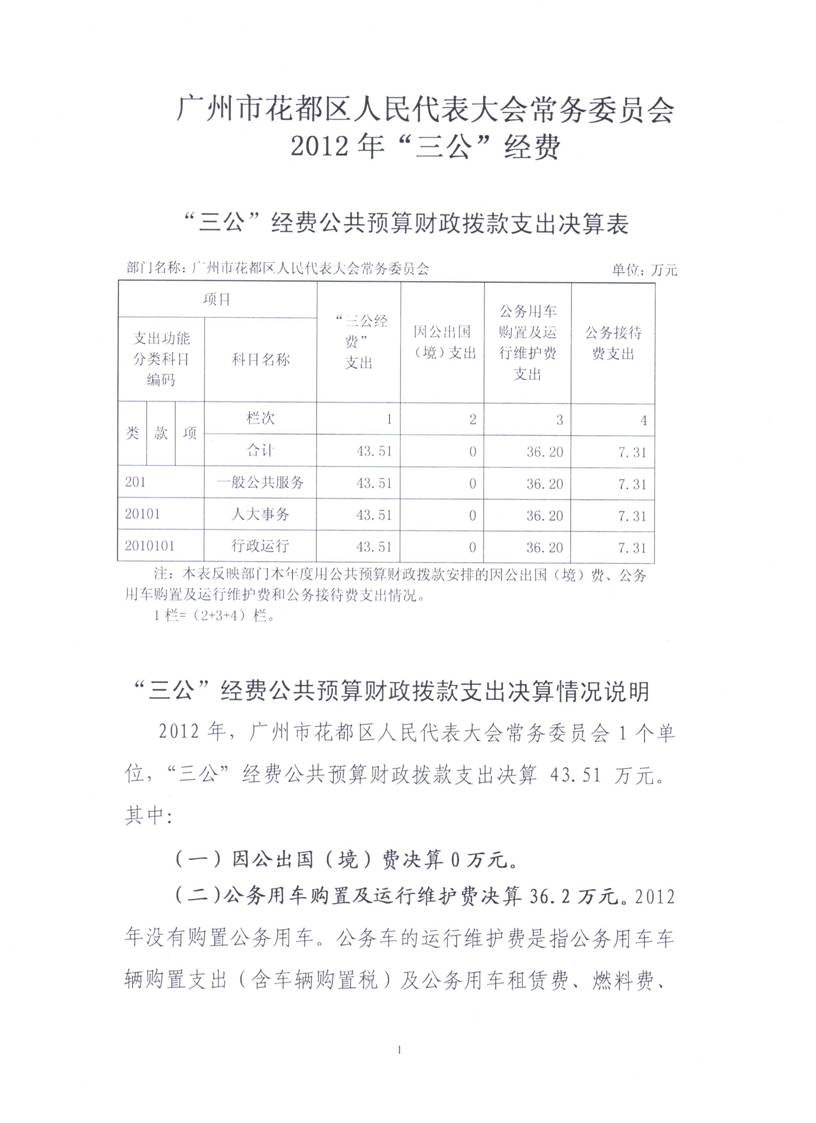 廣州市花都區人民代表大會常務委員會2012年“三公”經費