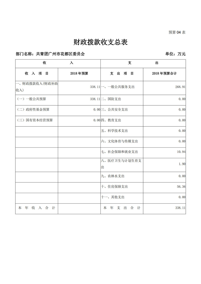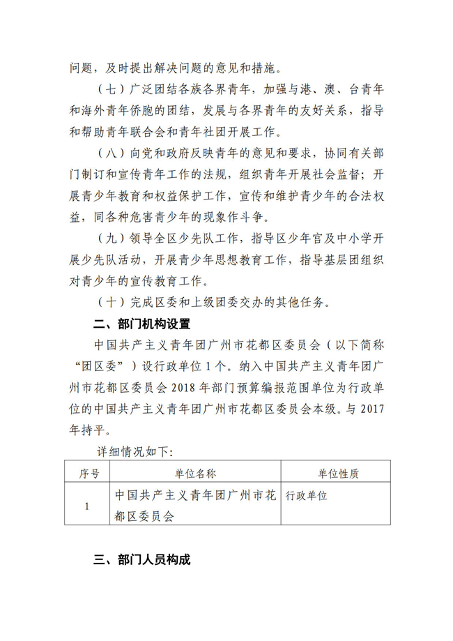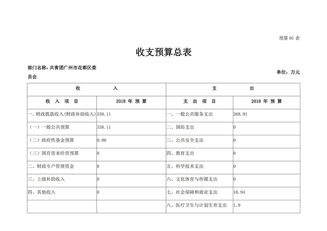 中國共產(chǎn)主義青年團廣州市花都區(qū)委員會2018年部門預算