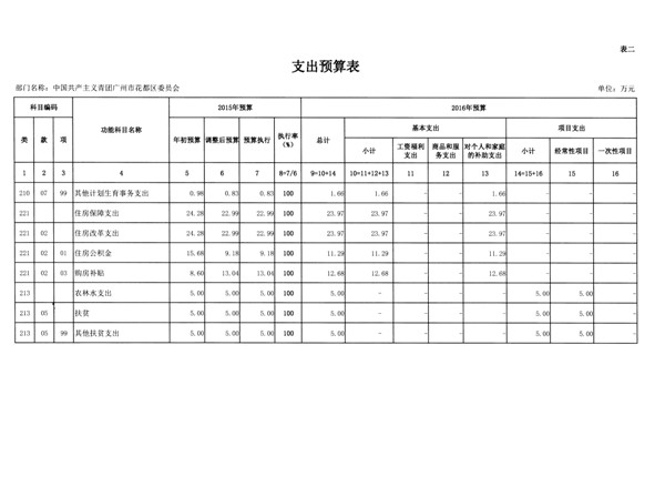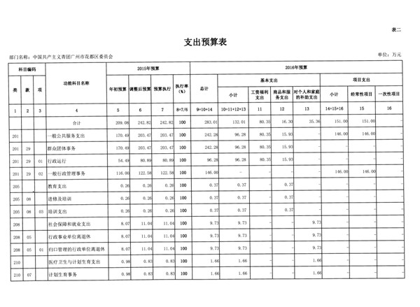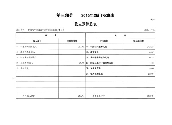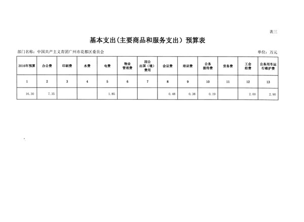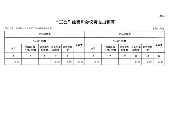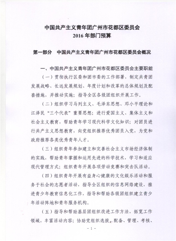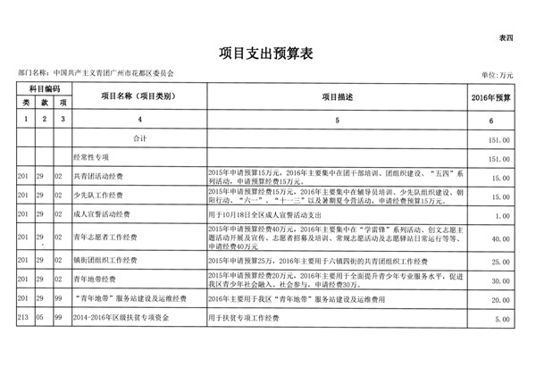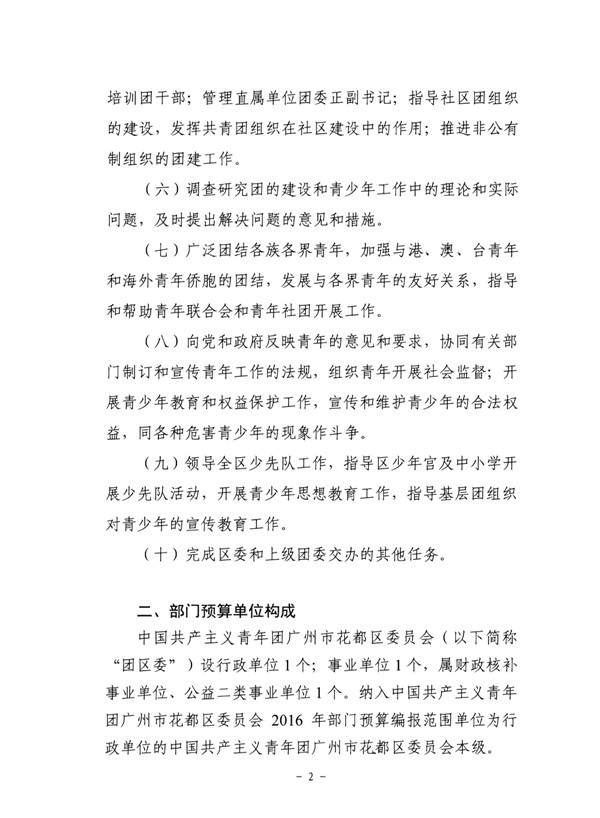 中國共產主義青年團廣州市花都區委員會2016年部門預算