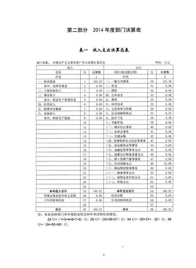 中國共產主義青年團廣州市花都區委員會2014年度部門決算