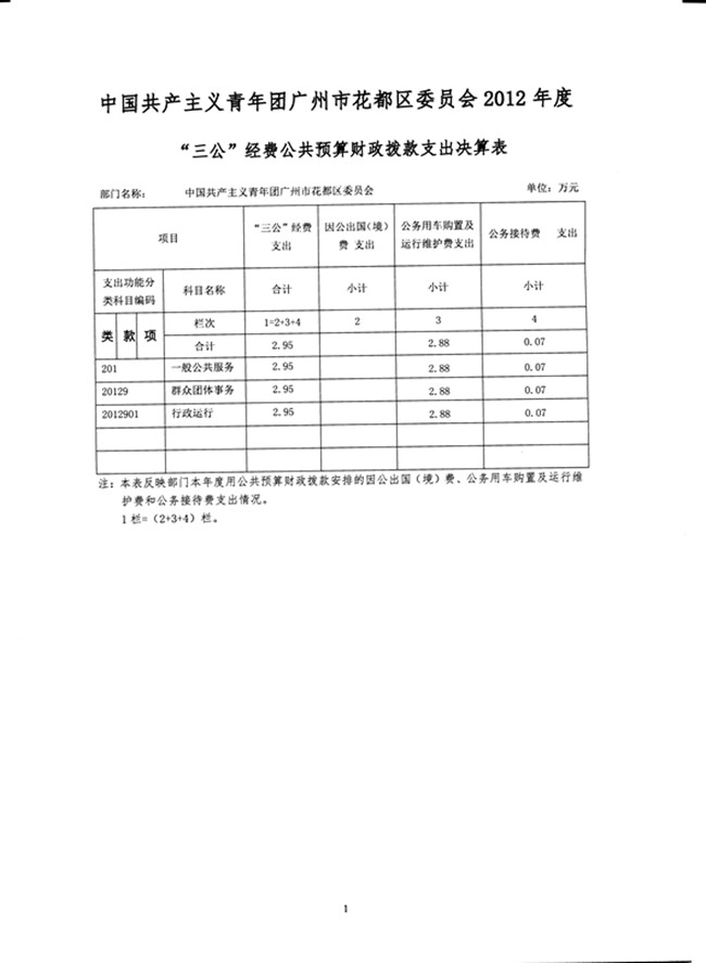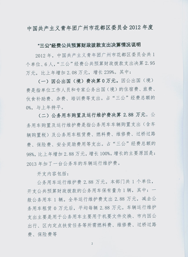 中國共產主義青年團廣州市花都區委員會2012年“三公”經費公共預算財政撥款支出決算