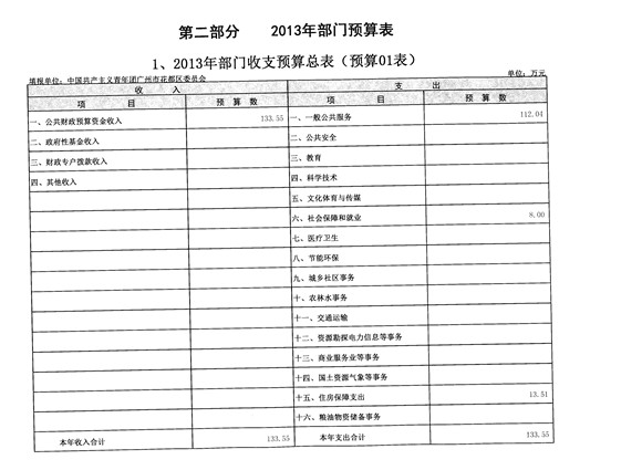 花都區(qū)中國共產(chǎn)主義青年團廣州市花都區(qū)委員會2013年部門預(yù)算