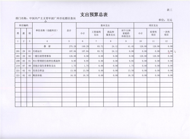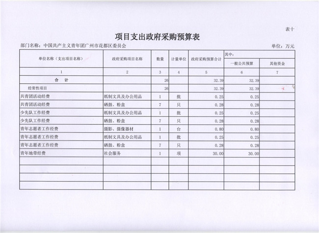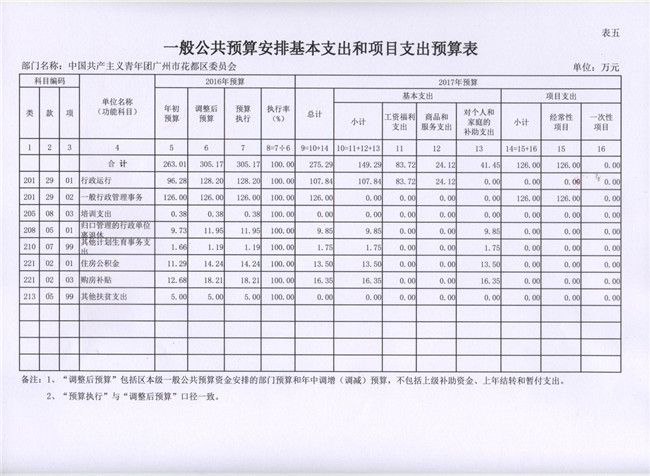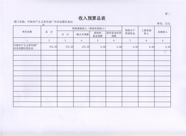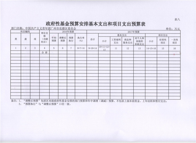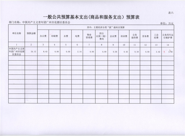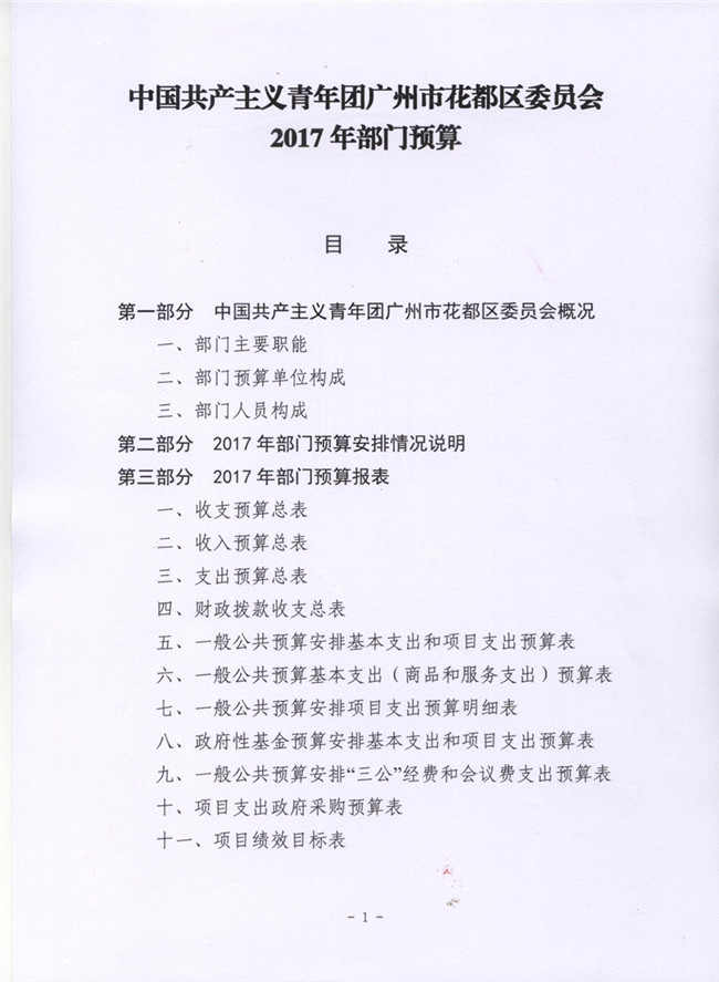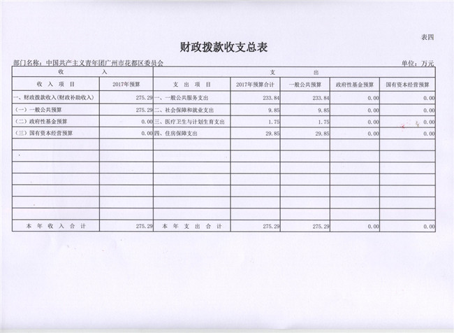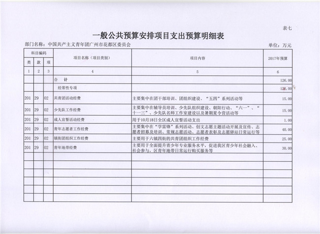中國共產主義青年團廣州市花都區委員會2017年部門預算
