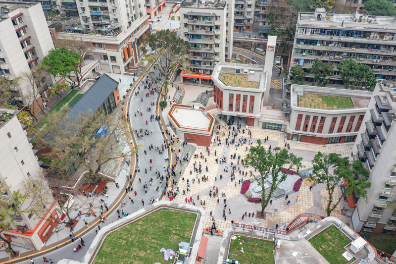 重慶市九龍坡區謝家灣街道民主村社區,過去大量居民樓年久失修,環境臟亂。依托城市更新,如今這里成為幸福宜居之地。