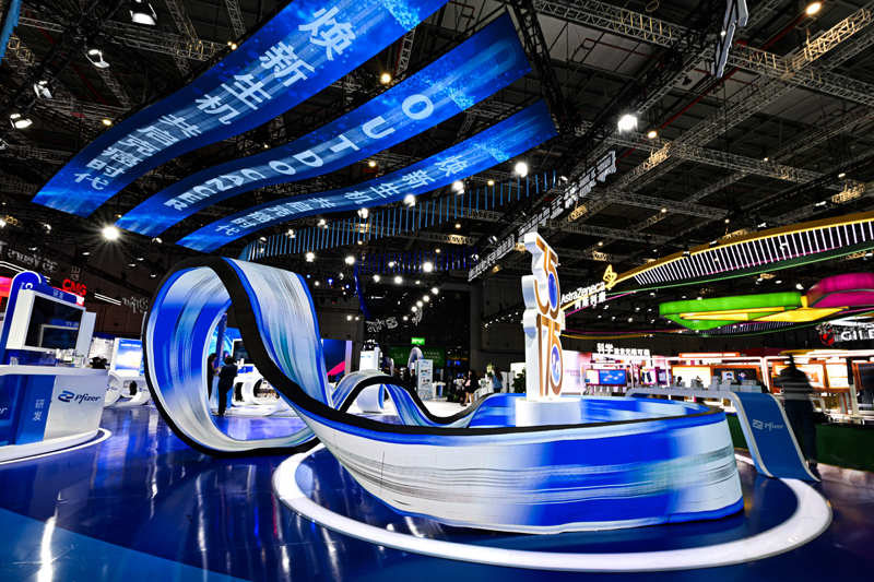 這是2024年11月8日在第七屆進博會醫療器械及醫藥保健展區拍攝的輝瑞展臺。