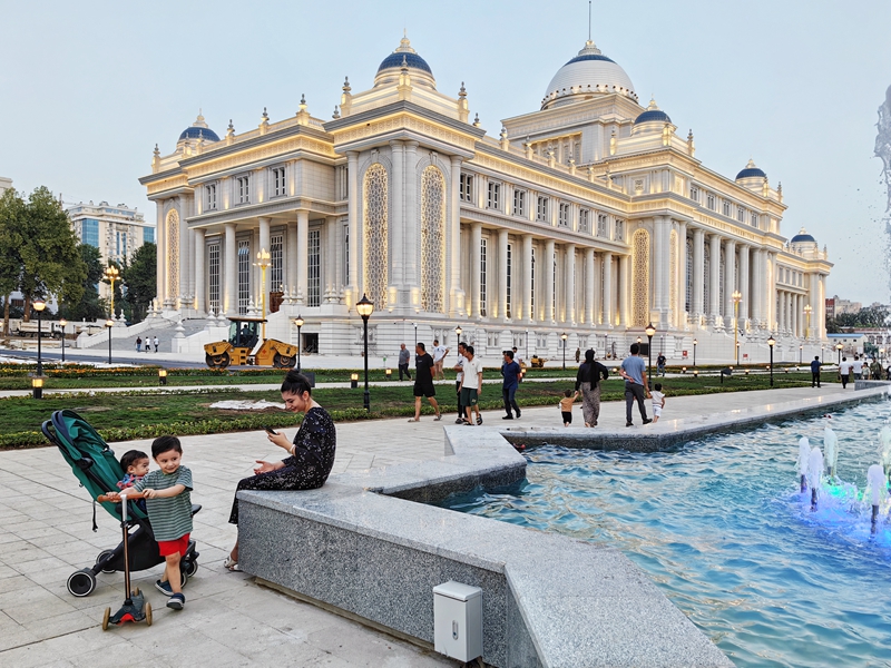 在總統府正門前平臺駐足,拉赫蒙總統指向不遠處中國援建的議會大樓和政府大樓,告訴習近平主席:“議會大樓前廣場已成為市民們休閑避暑的好去處,是杜尚別的新打卡地?!?/p>