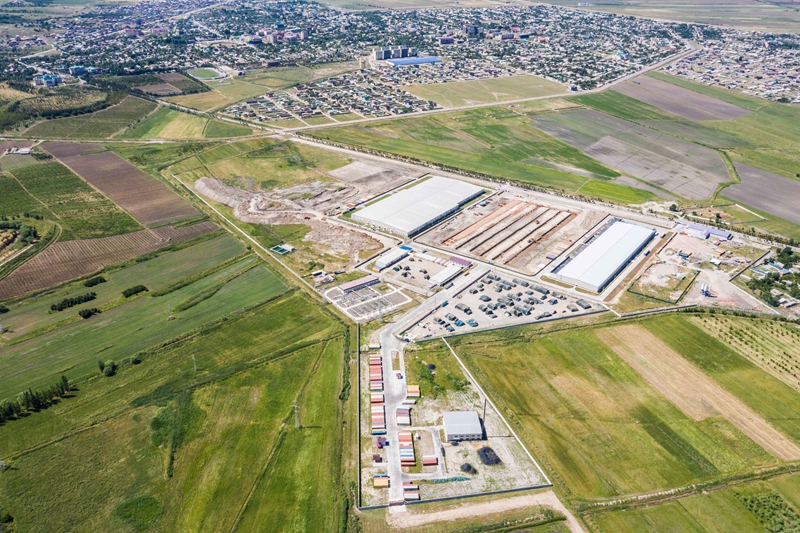 這是2019年5月21日在塔吉克斯坦丹加拉拍攝的中泰紡織廠(無人機照片)。