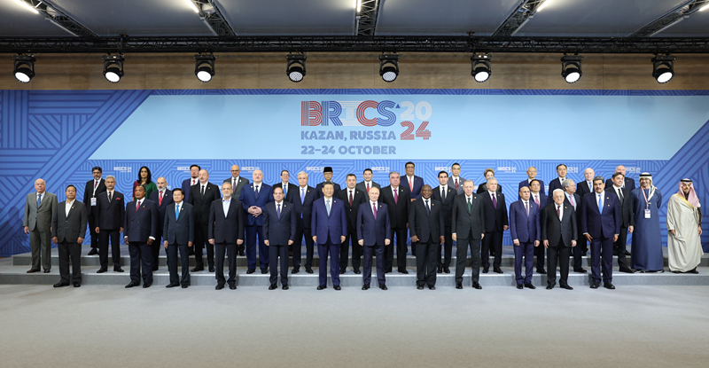 當(dāng)?shù)貢r(shí)間10月24日上午,國家主席習(xí)近平在喀山會(huì)展中心出席“金磚+”領(lǐng)導(dǎo)人對話會(huì)并發(fā)表題為《匯聚“全球南方”磅礴力量 共同推動(dòng)構(gòu)建人類命運(yùn)共同體》的重要講話。