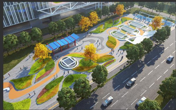 通過“隱藏式”設計,將車站出入口及風亭嵌入口袋公園,配套座椅、休憩乘涼、體育運動、文藝展陳、夜間經濟等設施,打造集多功能于一體的公共空間。