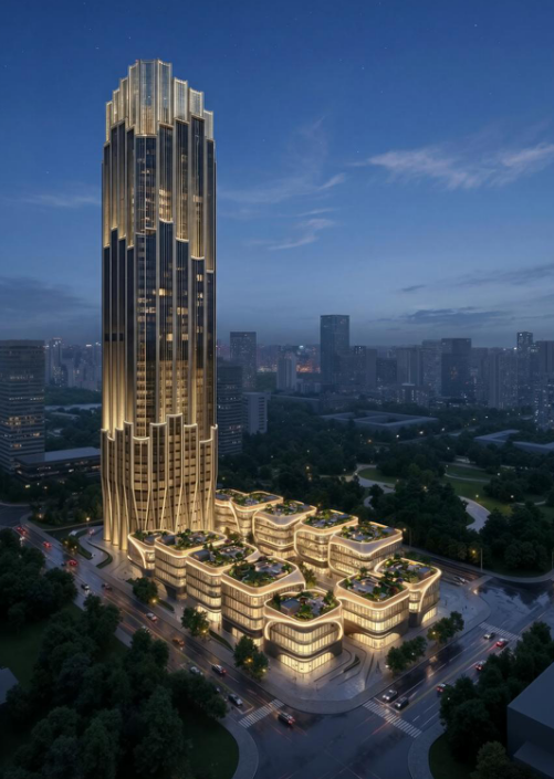 科地城標中心項目總投資約8億元,總建筑面積約12萬平方米,由設計上海中心的國際團隊 Gensler 執筆,規劃177米超高層塔樓和10棟商業小獨棟,引入五星級喜來登酒店國際品牌,打造集總部辦公、國際五星級酒店、高端商業街及人才中心于一體的高端商業綜合體項目。它的落地,將為花都中軸線增添一座“國際級別的綜合化商業服務地標”。