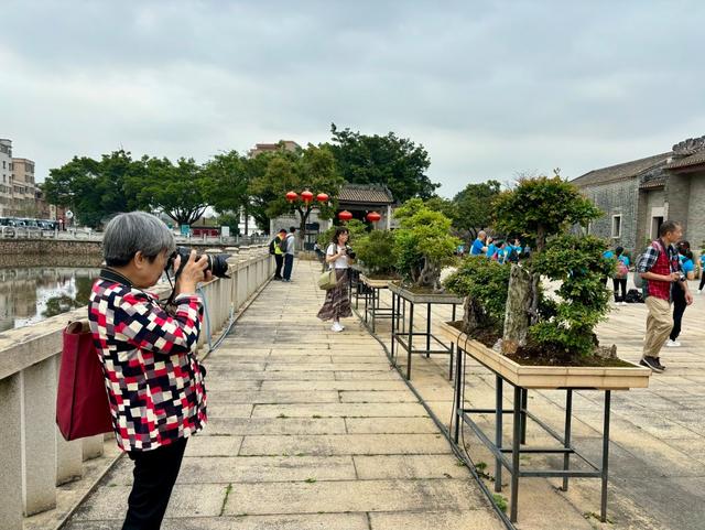 在資政大夫祠前,學(xué)校繪畫班的學(xué)員背著便攜椅凳和畫具,圍聚在劉偉青老師身旁,對(duì)著百年古建筑寫生。老師實(shí)地為大家講解畫此類建筑的技巧:“畫畫時(shí),構(gòu)件要為自己的作品服務(wù),無須做到無一遺漏”“建筑主體本身細(xì)節(jié)豐富,祠堂前的石塊可以不需畫得太密”……有學(xué)員現(xiàn)場提問,如果要在畫面上畫上游人,怎么畫好一點(diǎn)?老師隨即以身穿馬面裙的學(xué)員為模特,示范作畫并講解其中的原理。