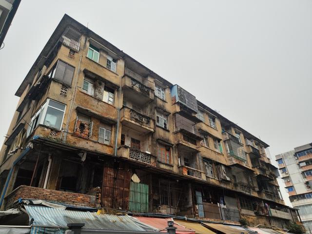 新華街道的集群街1號,占地面積373.6平方米,是一棟五層高的居民樓,污漬斑斑的土黃色外墻,雨水管、電線裸露在外,晚上烏燈黑火。這棟建筑原為居住用途,已空置十多年。2019年,房屋經過安全鑒定為嚴重損壞房,是居民身邊的安全隱患。