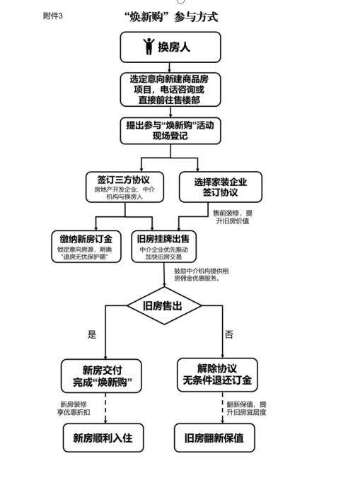 同時,若換房人存在售前、新房裝修需求,可與家裝家居企業簽訂協議,明確舊房翻新、新房裝修優惠方案以及家具、家電折扣等。