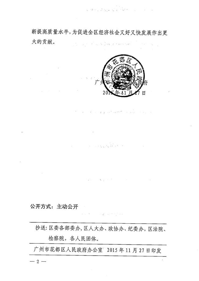 廣州市花都區人民政府關于2014年度花都區長質量獎及提名獎獲獎企業的通報 【花府[2015]10號】