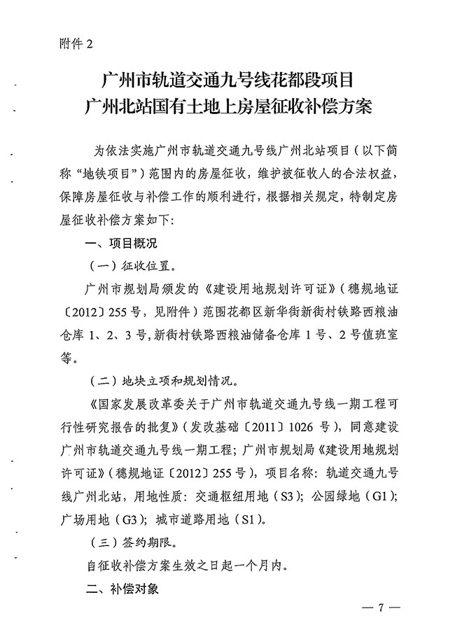 廣州市花都區人民政府關于征收廣州市軌道交通九號線花都斷項目廣州北站國有土地上房屋的通知 【花府[2013]4號】