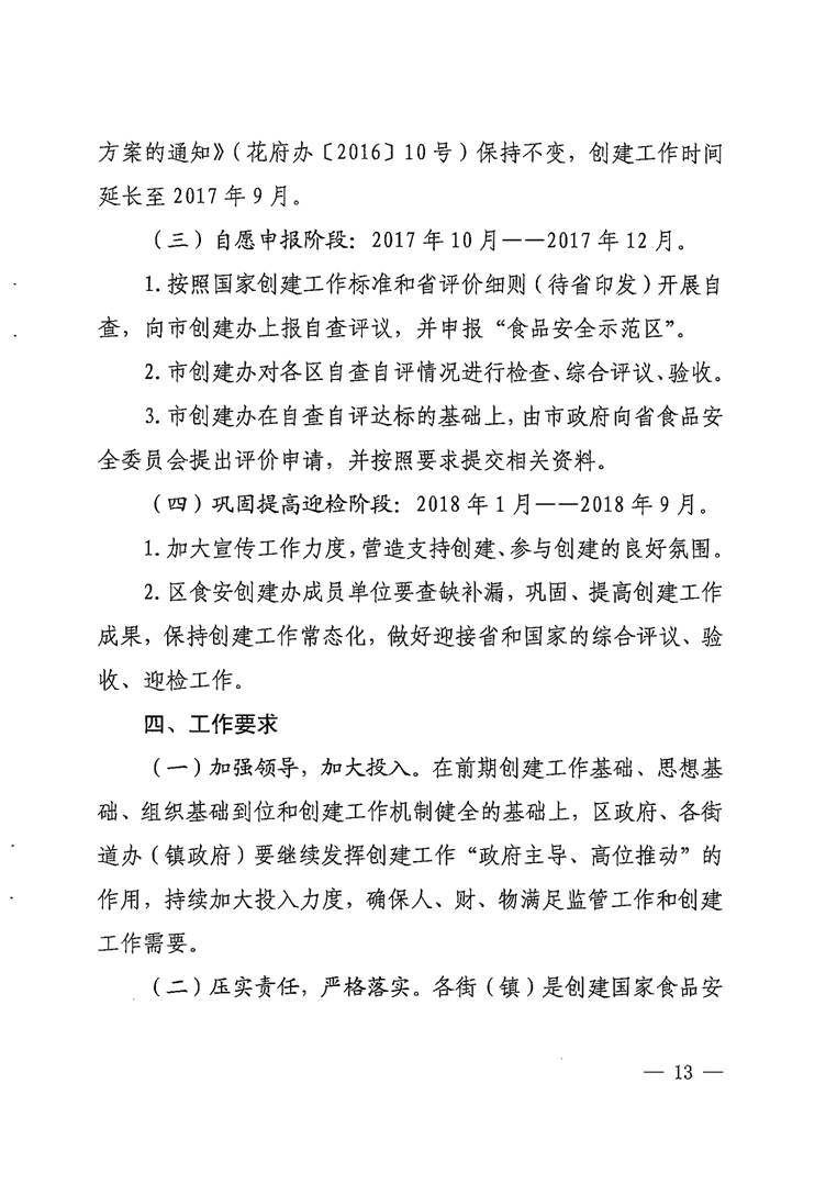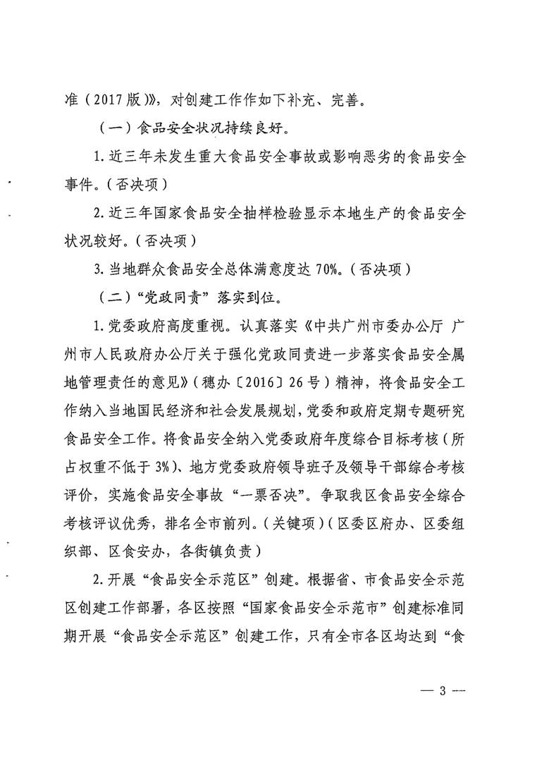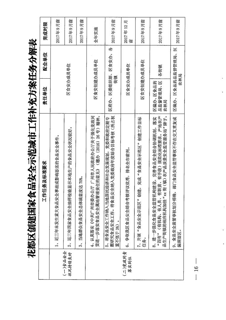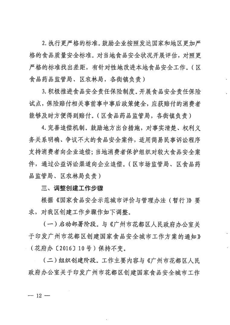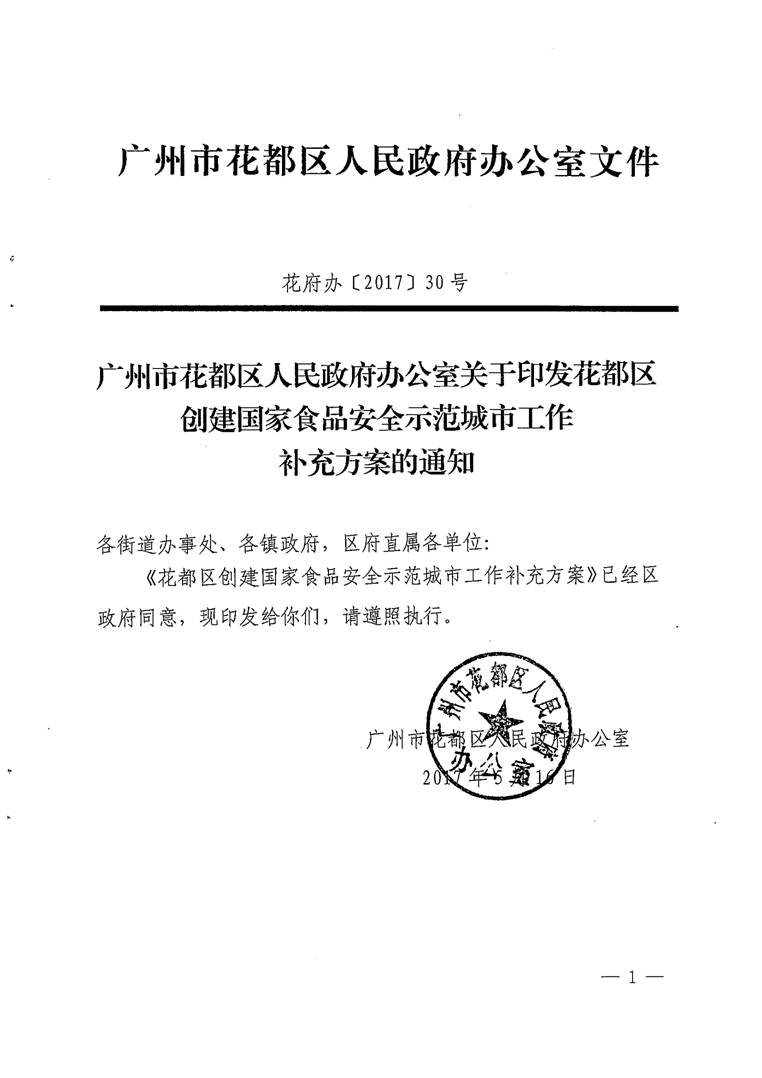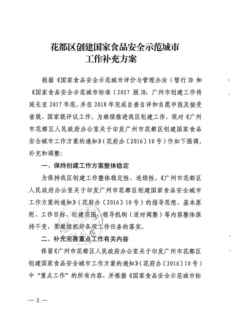廣州市花都區人民政府辦公室關于印發花都區創建國家食品安全示范城市工作補充方案的通知【花府辦〔2017〕30號】