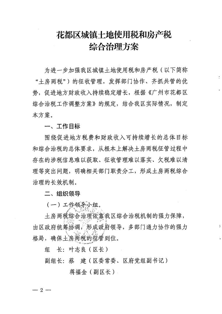 廣州市花都區(qū)人民政府辦公室關(guān)于印發(fā)花都區(qū)城鎮(zhèn)土地使用稅和房產(chǎn)稅綜合治理方案的通知【花府辦〔2017〕32號】(已失效)