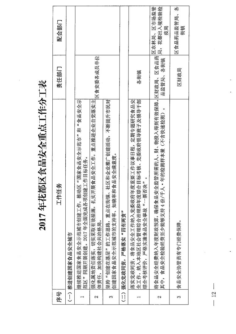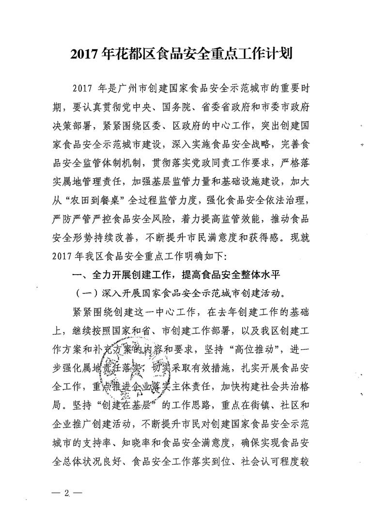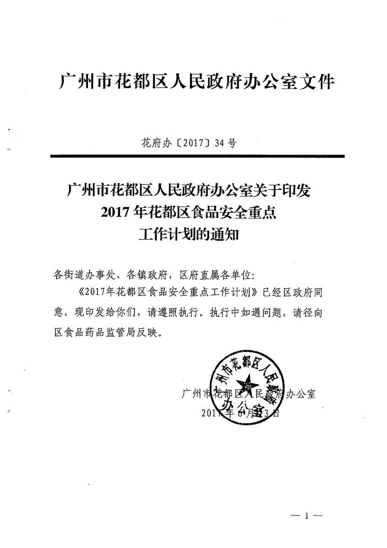 廣州市花都區人民政府辦公室關于印發2017年花都區食品安全重點工作計劃的通知【花府辦〔2017〕34號】(已失效)