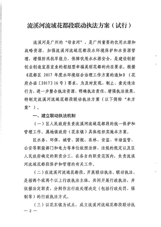 廣州市花都區人民政府辦公室關于印發流溪河流域花都段聯動執法方案(試行)的通知【花府辦〔2017〕44號】(已失效)