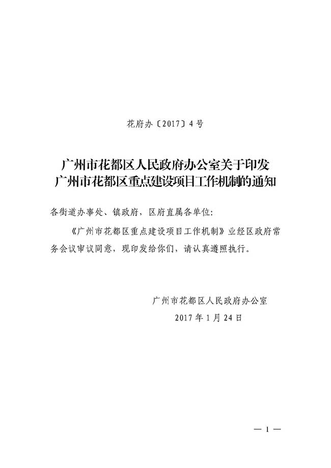 廣州市花都區人民政府辦公室關于印發廣州市花都區重點建設項目工作機制的通知【花府辦〔2017〕4號】