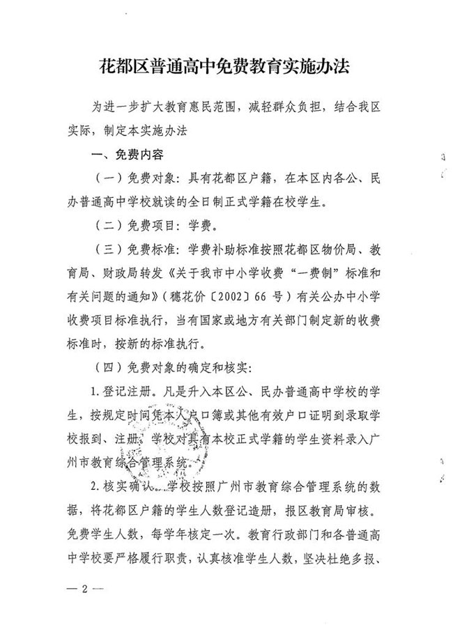 廣州市花都區(qū)人民政府辦公室關(guān)于印發(fā)花都區(qū)普通高中免費(fèi)教育實(shí)施辦法的通知【花府辦[2016]1號(hào)】