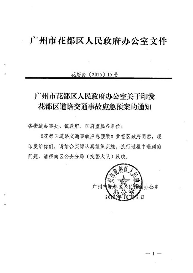 廣州市花都區人民政府辦公室關于印發花都區道路交通事故應急預案的通知 【花府辦[2015]15號】