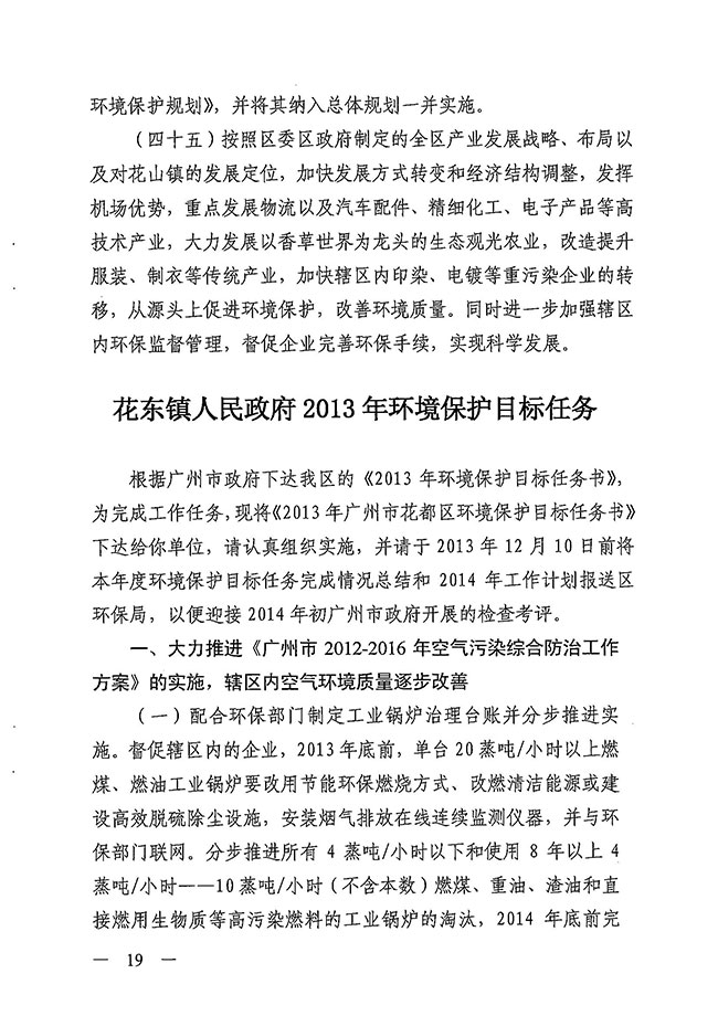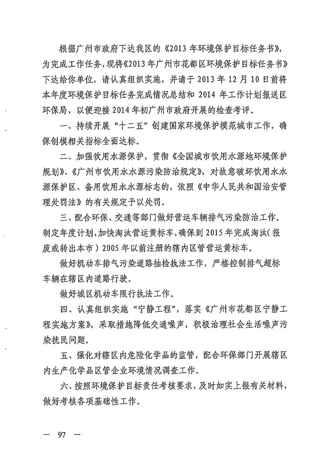 廣州市花都區人民政府辦公室關于印發《2013年廣州市花都區環境保護目標任務書》的通知 【花府辦[2013]12號】