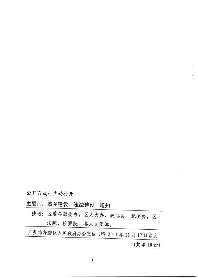 關于印發《花都區集中查處違法建設專項行動工作方案》的通知 【花府辦[2011]30號】