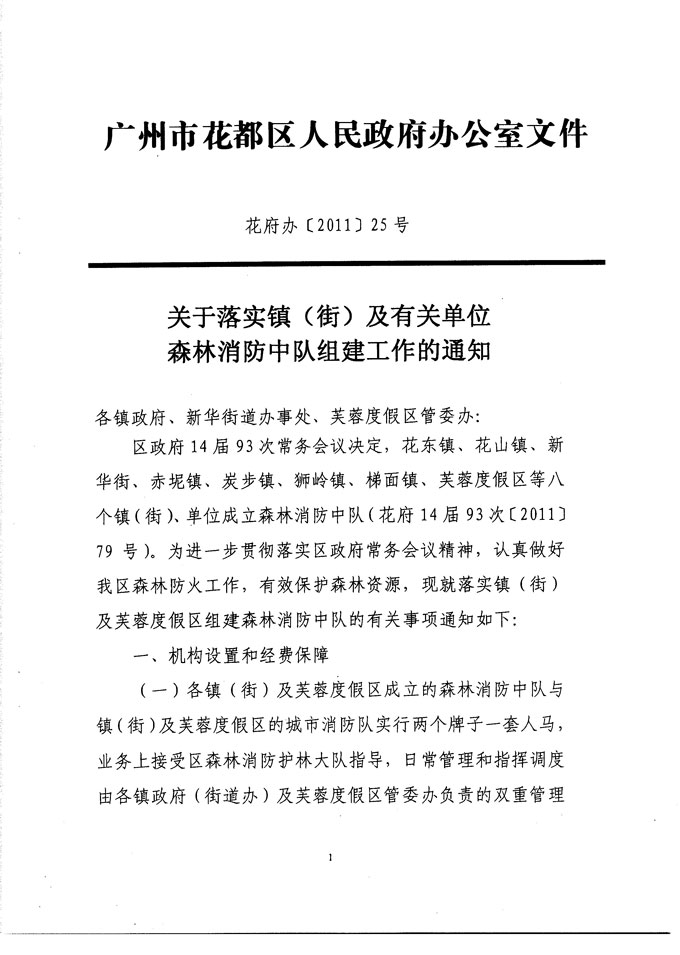 關(guān)于落實(shí)鎮(zhèn)(街)及有關(guān)單位森林消防中隊(duì)組建工作的通知 【花府辦[2011]25號(hào)】