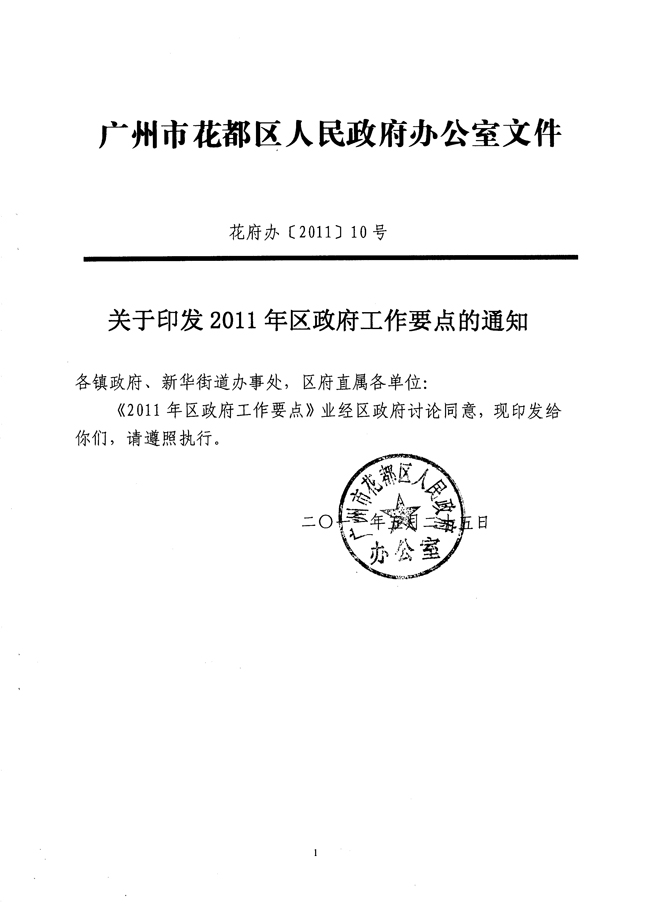 關(guān)于印發(fā)2011年區(qū)政府工作要點(diǎn)的通知 【花府辦[2011]10號(hào)】