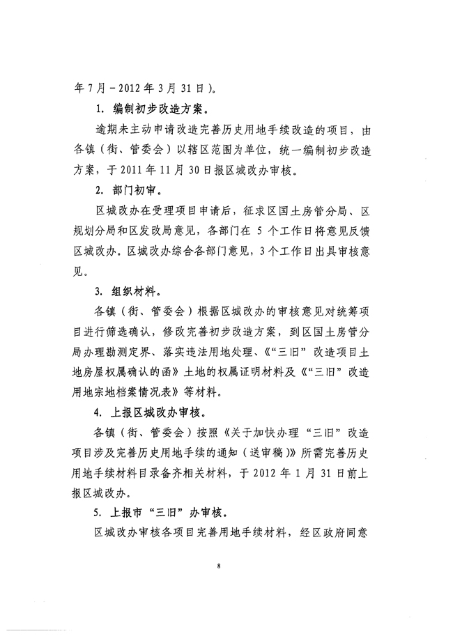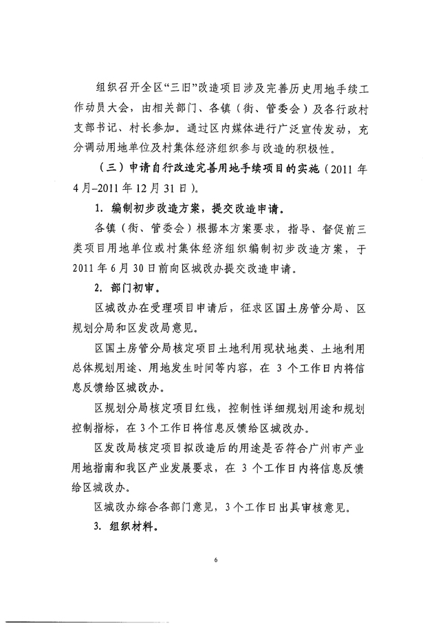 關于印發(fā)《花都區(qū)“三舊”改造項目涉及完善歷史用地手續(xù)工作方案》的通知 【花府辦[2011]7號】