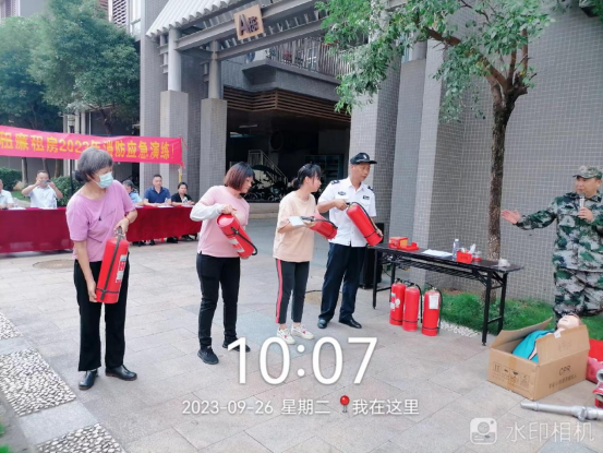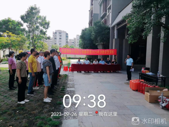 為加強(qiáng)公租房小區(qū)物業(yè)工作人員及租戶的消防安全工作,增強(qiáng)消防安全意識(shí),進(jìn)一步培養(yǎng)小區(qū)物業(yè)工作人員及租戶在突發(fā)性災(zāi)害發(fā)生時(shí),掌握有關(guān)防火逃生知識(shí)技能。于2023年9月26日上午,由公租房小區(qū)物業(yè)公司聯(lián)合區(qū)住建局、新都西居委、轄區(qū)民警在公租房小區(qū)進(jìn)行消防器材使用及逃生應(yīng)急演練。