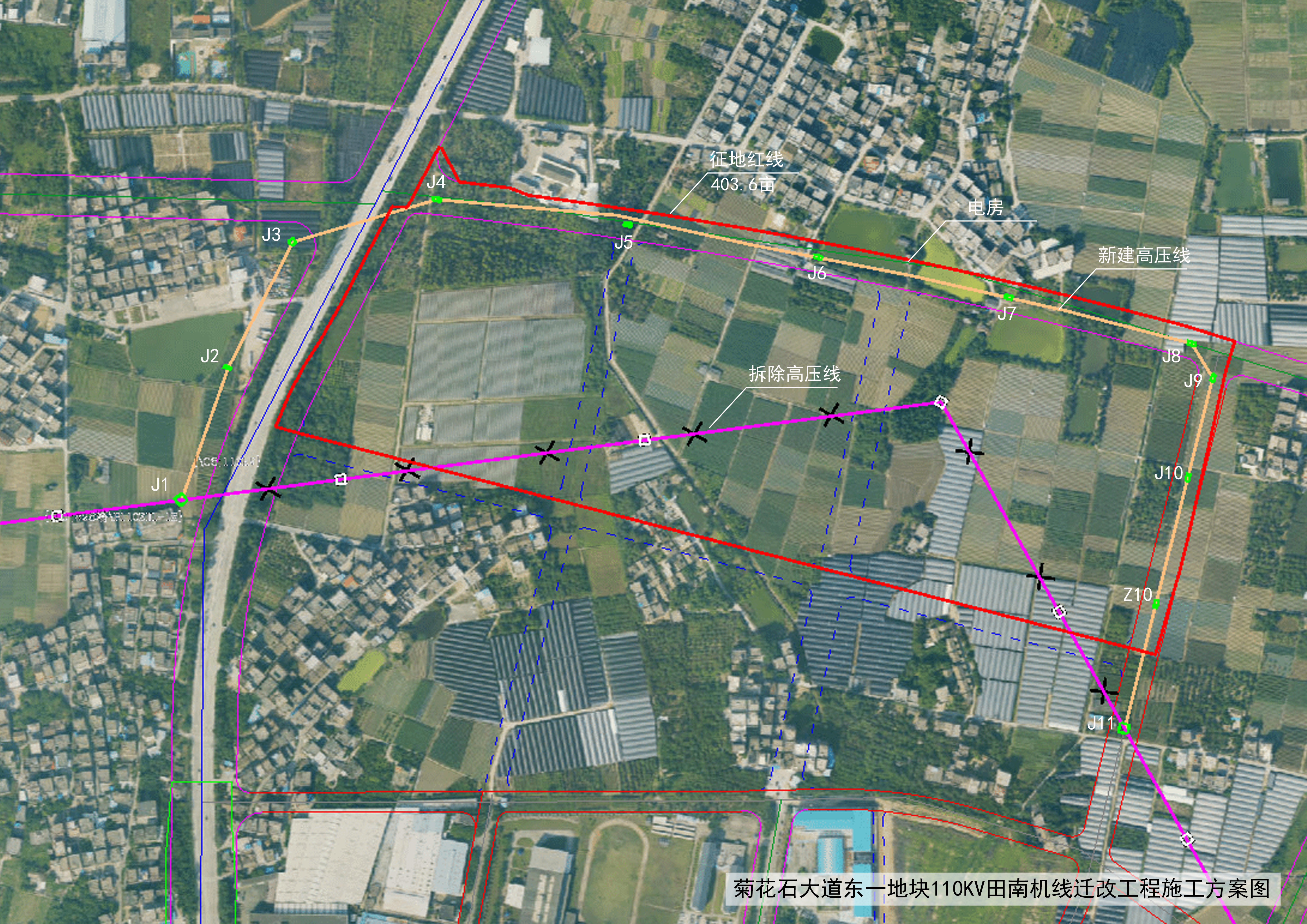 附件:菊花石大道東一地塊110KV田南機線遷改工程施工方案衛星圖.jpg