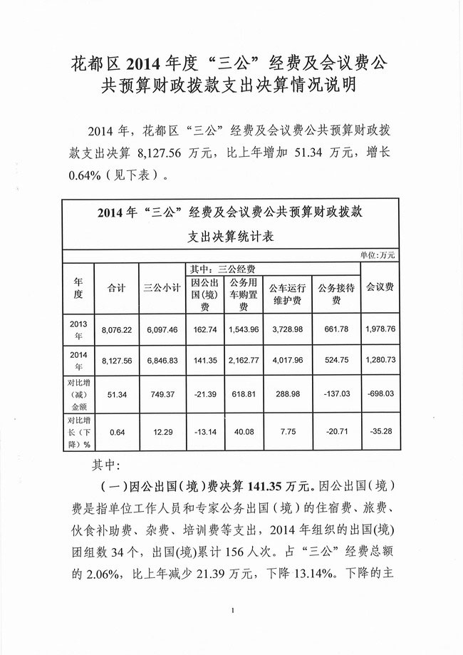 花都區2014年度“三公”經費及會議費公共預算財政撥款支出決算情況說明