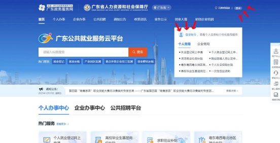 點擊“廣東公共就業服務云平臺”下方服務專區的【公共招聘平臺】,即可進入廣東人社公共招聘服務平臺。