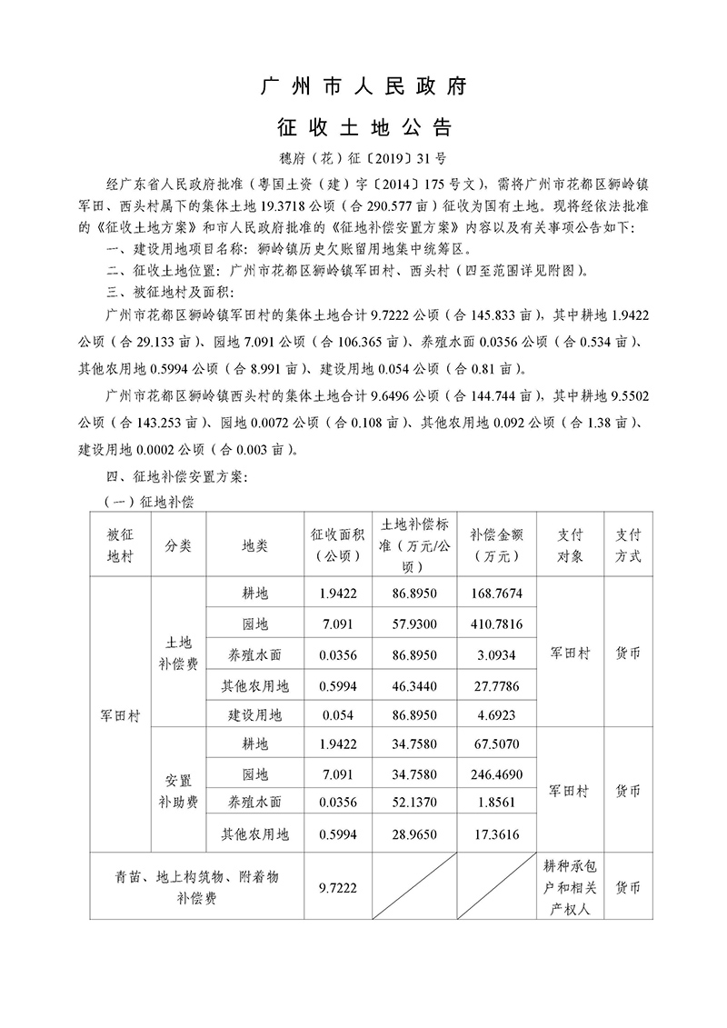 廣州市人民政府征收土地公告--穗府(花)征〔2019〕31號