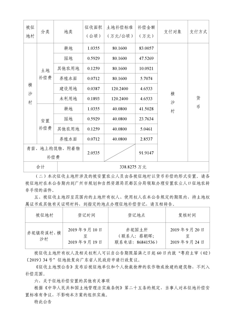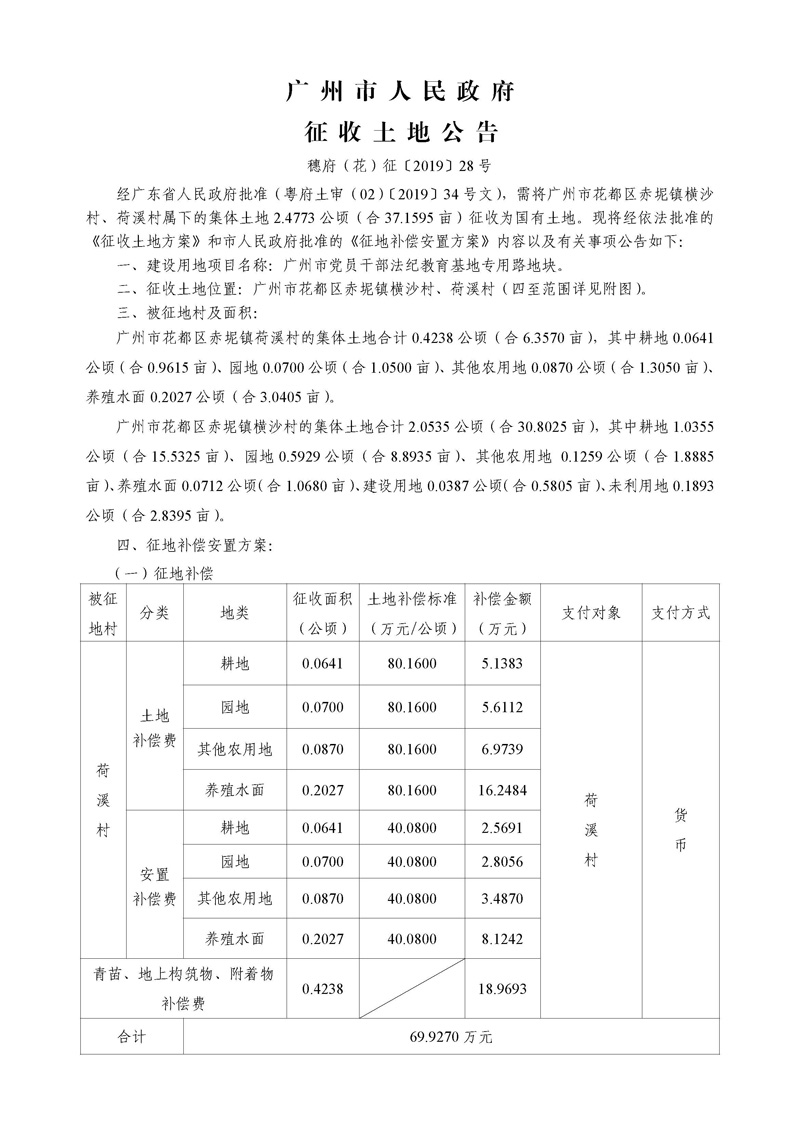 廣州市人民政府征收土地公告--穗府(花)征〔2019〕28號