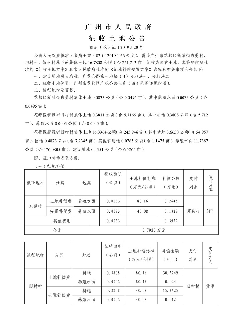 廣州市人民政府征收土地公告--穗府(花)征〔2019〕20號