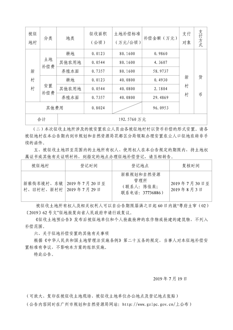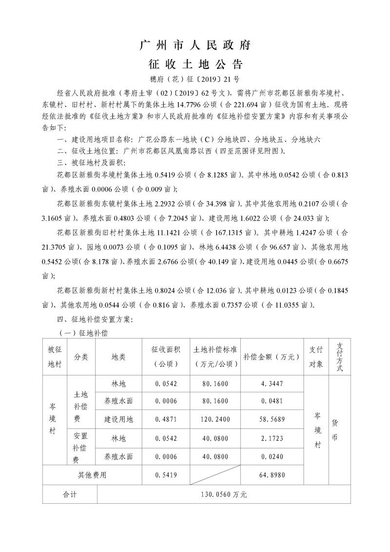 廣州市人民政府征收土地公告--穗府(花)征〔2019〕21號(hào)