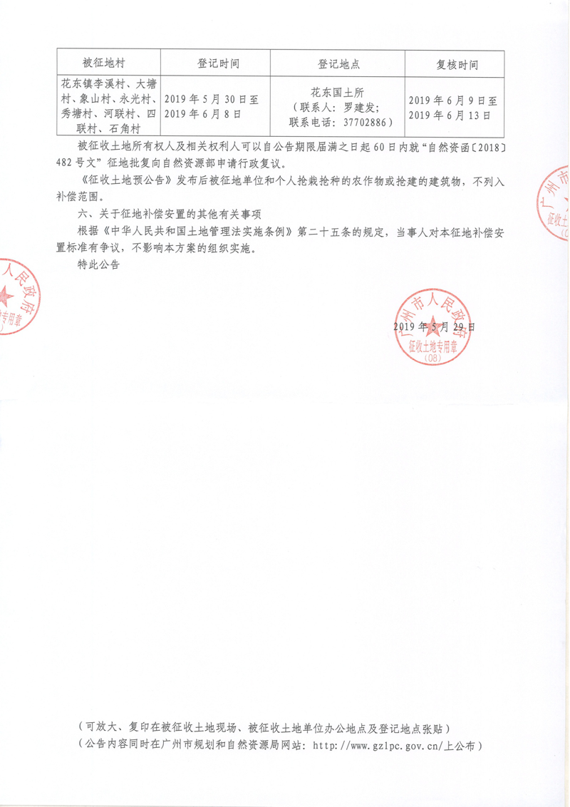 廣州市人民政府征收土地公告--穗府(花)征〔2019〕14號