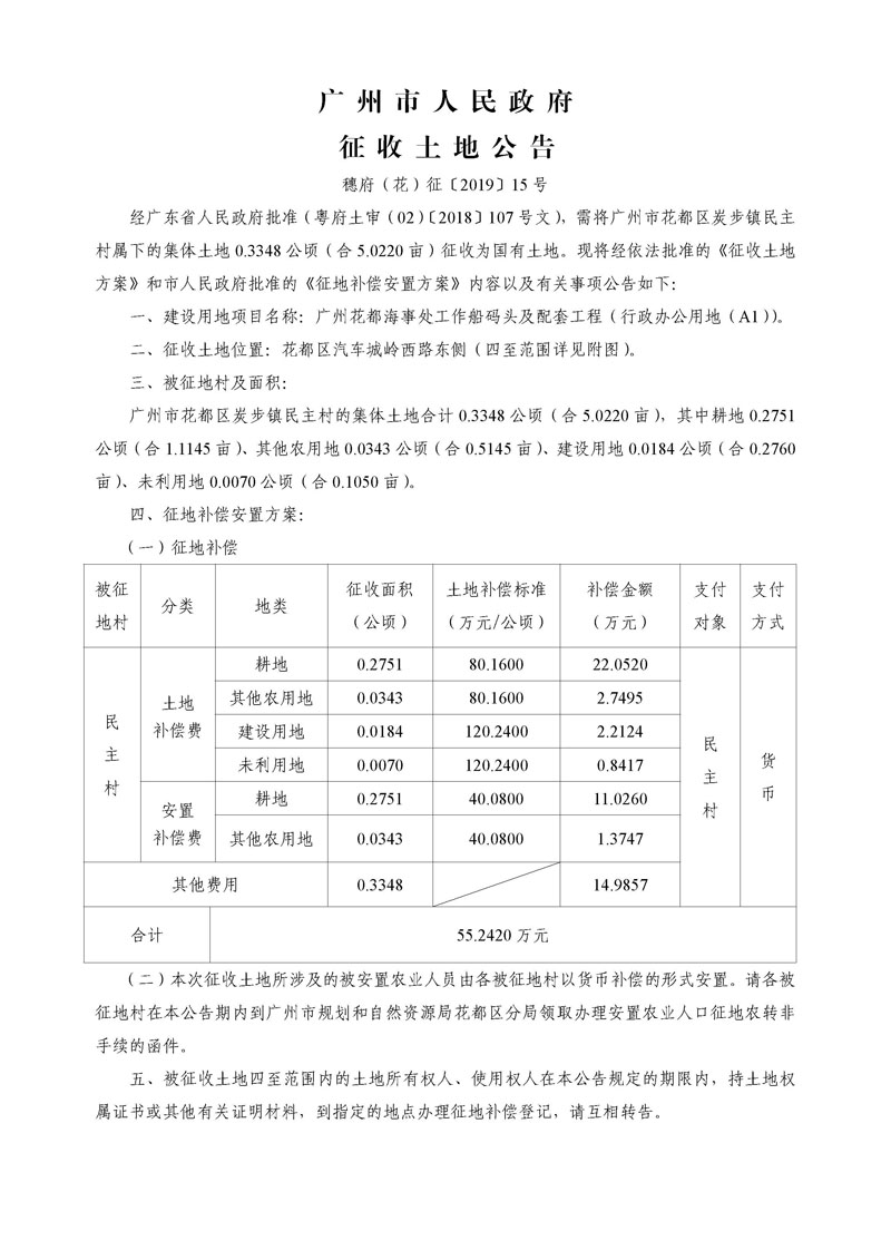 廣州市人民政府征收土地公告--穗府(花)征〔2019〕15號(hào)