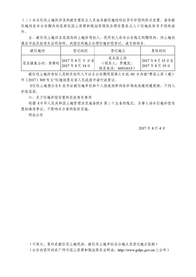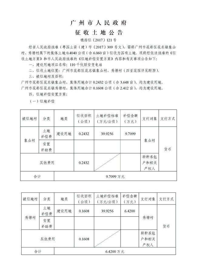 廣州市人民政府征收土地公告——穗府征[2017]121號(hào)