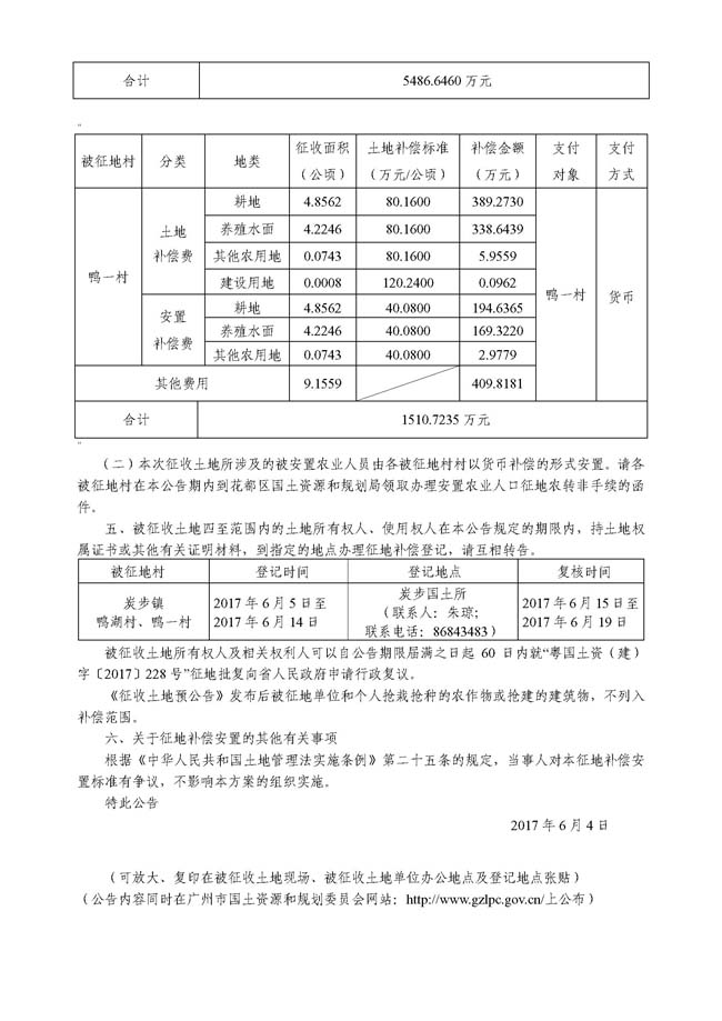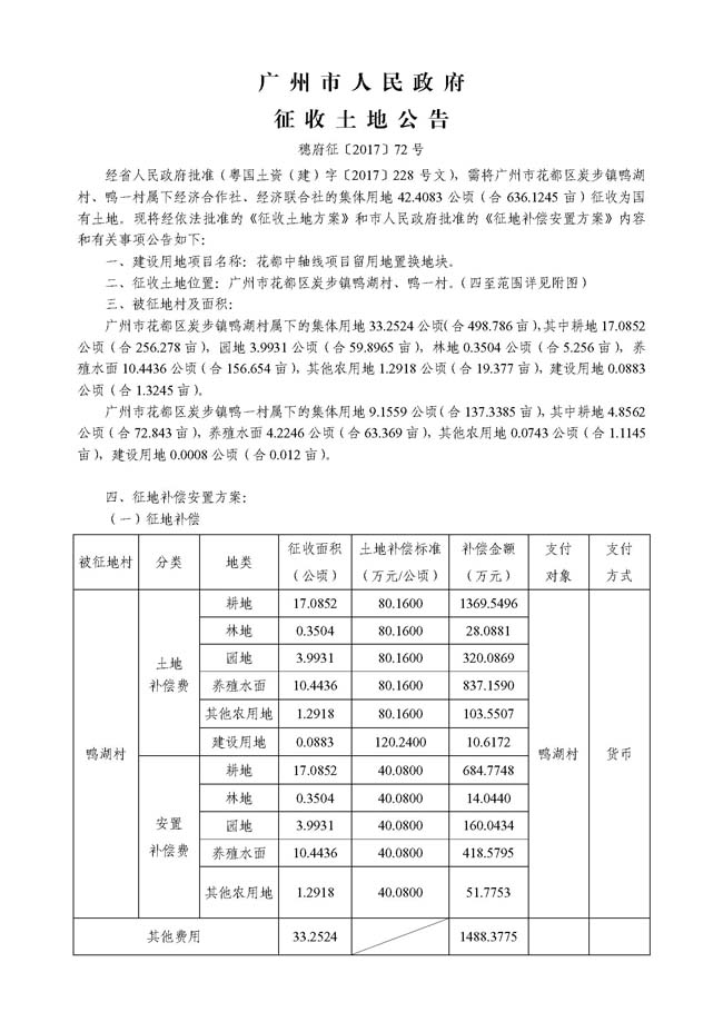 廣州市人民政府征收土地公告——穗府征〔2017〕72號