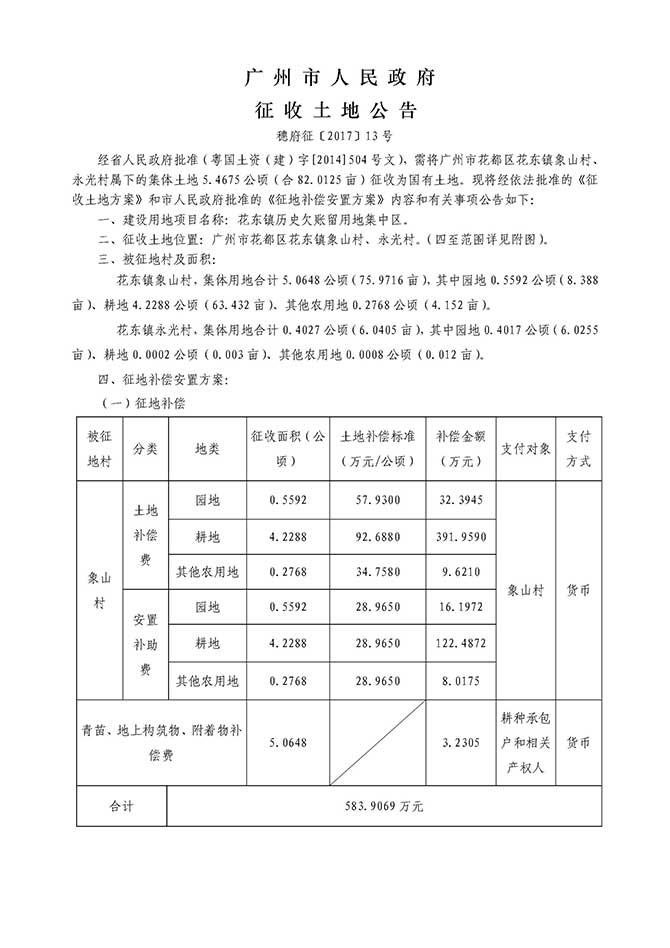 廣州市人民政府征收土地公告——穗府征〔2017〕13號(hào)