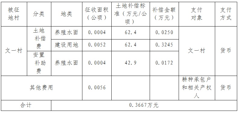 廣州市花都區炭步鎮文一村的集體土地合計0.0056公頃(合0.0840畝),其中養殖水面0.0004公頃(合0.0060畝),建設用地0.0052公頃(合0.0780畝)。