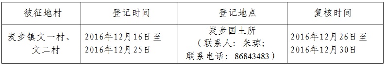 五、被征收土地四至范圍內的土地所有權人、使用權人在本公告規定的期限內,持土地權屬證書或其他有關證明材料,到指定的地點辦理征地補償登記,請互相轉告。