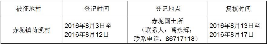 經(jīng)省人民政府批準(zhǔn)(粵國土資(建)字〔2016〕241號文),需將廣州市花都區(qū)赤坭鎮(zhèn)荷溪村屬下的集體土地2.7352公頃(合41.0280畝)征收為國有土地。現(xiàn)將經(jīng)依法批準(zhǔn)的《征收土地方案》和市人民政府批準(zhǔn)的《征地補(bǔ)償安置方案》內(nèi)容以及有關(guān)事項(xiàng)公告如下:
