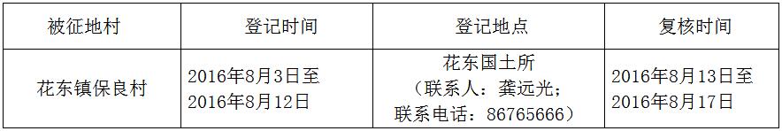 經(jīng)省人民政府批準(zhǔn)(粵國土資(建)字〔2016〕281號文),需將廣州市花都區(qū)花東鎮(zhèn)保良村屬下的集體土地2.2196公頃(合33.29畝)征收為國有土地。現(xiàn)將經(jīng)依法批準(zhǔn)的《征收土地方案》和市人民政府批準(zhǔn)的《征地補償安置方案》內(nèi)容以及有關(guān)事項公告如下: